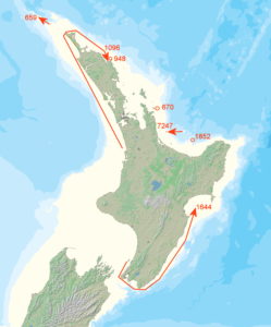 There were also a couple of unusual coast to coast recaptures last year. Kingfish are often recaptured close to where they were released, or within 30 miles, even after long times at liberty. Long distance, even trans-Tasman recaptures have been recorded but they are not common. Seven kingfish recaptures at liberty for over 600 days and recaptured last fishing year are shown on the map below (days at liberty red numbers).